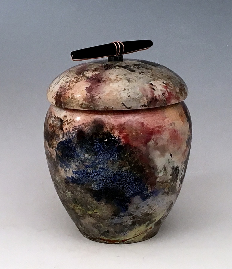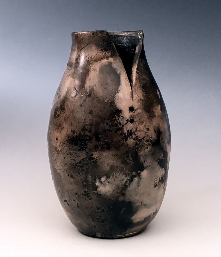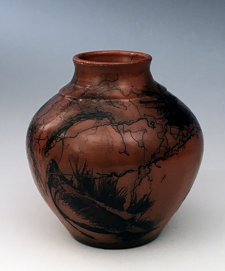 Twenty years later I took my first pottery class at the Morton Center in West Lafayette, Indiana. I was in love with the first spin of the wheel. Through local classes, workshops and being self taught with the aid of books and the Internet I have learned to turn humble mud into pieces of pottery. The techniques I work with are far ranging. I make functional pieces on the wheel or by hand that one can use every day. Pieces that are decorative involving horse hair, feathers, outdoor pit firings, and dipping hot pots in fermenting flour solutions to achieve amazing natural designs on pottery.